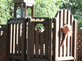 There are lots of places to explore, and it's very easy to lose track of where everyone is. However, there are usually other friendly parents there who kind of keep an eye out for each other. It has become more fun, but more of a workout for me since Lincoln learned how to walk. Emily can almost always find a "friend" or two to play with. :o)